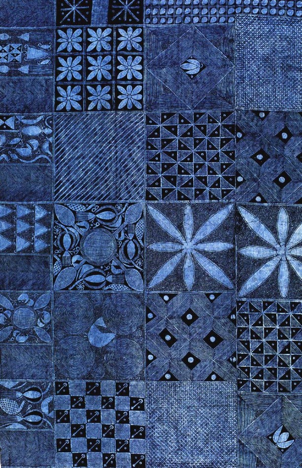 The Baoulé textile is an Ikat-dyed indigo fabric made by the Baule peoples of the Ivory Coast. It’s often woven in long strips, and then sewn together to make a complete textile often worn as a wrap skirt (by the women) or draped over the shoulder by men.