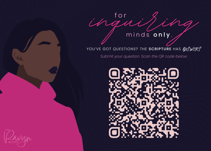 What’s in a Name Sessions will take place every Wednesday at noon as a part of my Lunch and Learn Bible Study Sessions. Here, we talk about topical situations and how our faith in Christ would challenge how we view them. Some For Inquiring Minds Only questions will also be answered as a mini-series during the Lunch and Learn Sessions.